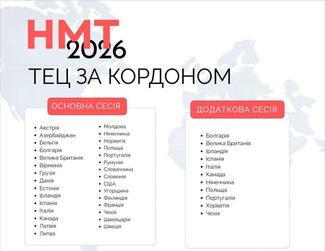 НМТ-2026: де буде створено тимчасові екзаменаційні центри за кордоном